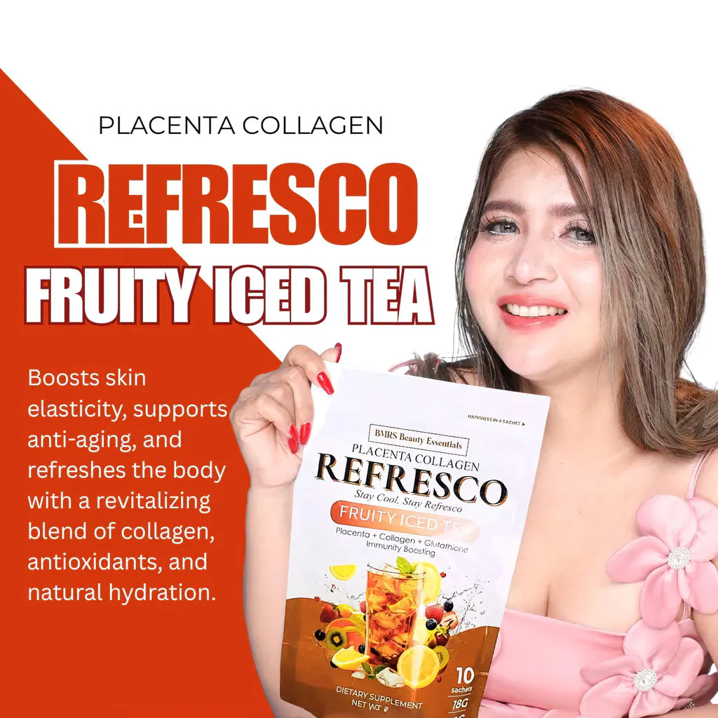 Refresh, nourish, and glow from within with BMRS Refresco Fruity Iced Tea, a delicious beauty-boosting drink infused with Placenta, Collagen, and Glutathione. This revitalizing iced tea mix supports skin health, immune function, and overall wellness — all in a refreshing fruity blend you can enjoy daily.