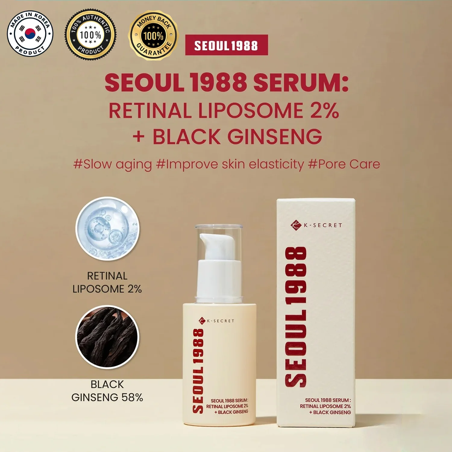 Discover the next level of slow-aging care with K-SECRET SEOUL 1988 Retinal Serum—your key to visibly firmer, more radiant, and youthful skin. Perfect for anyone looking to embrace the best of K-beauty science and tradition.