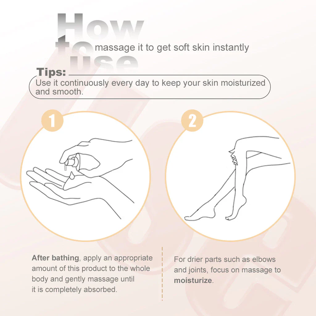 How to use: After bathing, apply an appropriate amount of this product to the whole body and gently massage until it is completely absorbed.